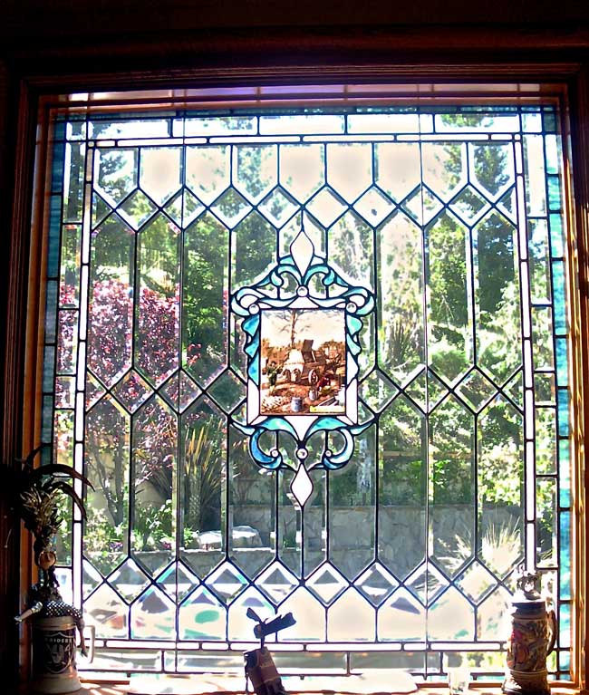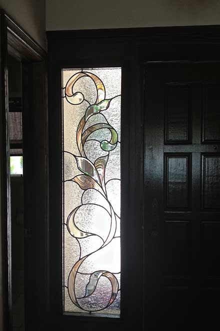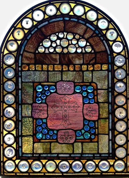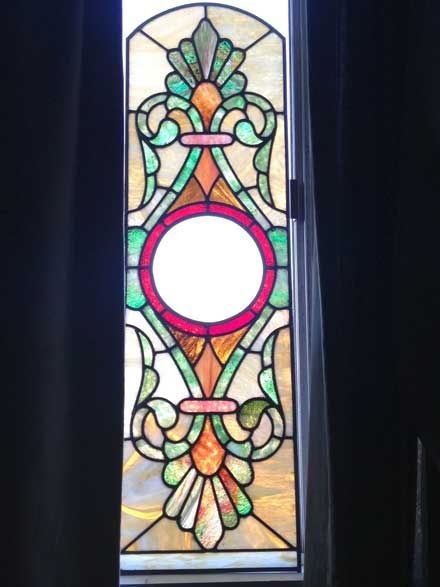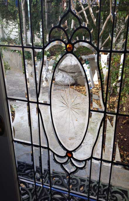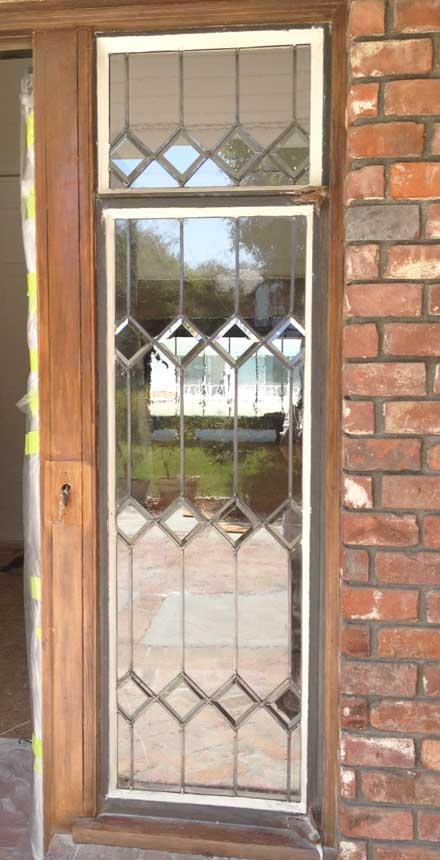 After - The beveled pieces are replaced with new and the panel was rebuilt with new lead.
